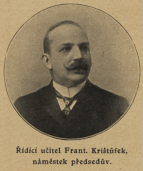 Roku 1887 byl František Krištůfek přeložen do Teplic, kde po aféře s falešnými podpisy na petičních arších za založení českojazyčné státní školy nahradil dosavadního ředitele obecné školy Ústřední matice školské Jana Klecandu. Vedle učitelského povolání zde působil také jako sbormistr Dělnického zpěváckého spolku Slavík-Lidumil v Teplicích. V roce 1891 odešel do Žatce a poté do Liběchova na Mělnicku, kde byl jmenován řídícím učitelem zdejší školy Ústřední matice školské.