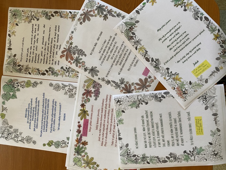 „...Tak díky Vám, že dáváte nám stín i dech, jste poezie Země, co rozkvétá ve všech dnech...“, napsala Eliška Kořínková ze ZŠ Šrámkova.