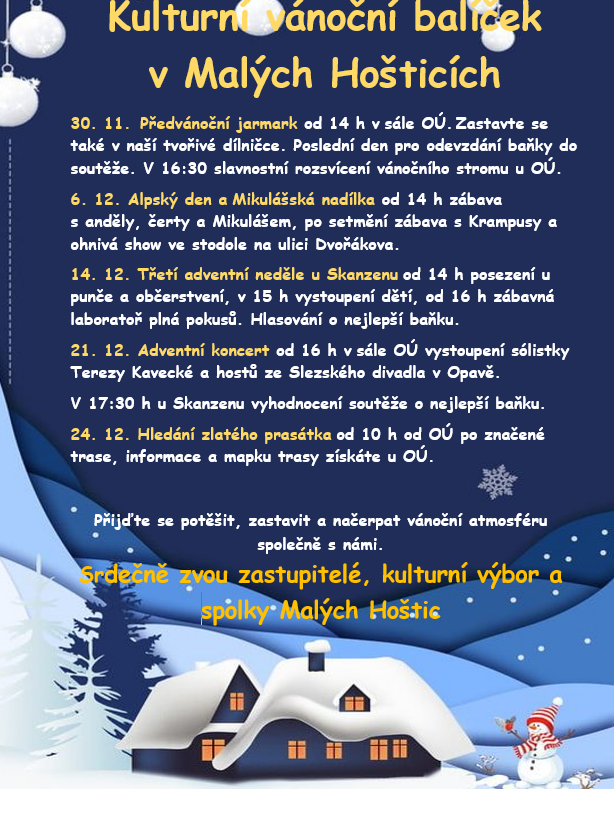 Home Aktuality Vánoční balíček 2025 Přejít na ... Hlášení rozhlasu Malohoštický zpravodaj Hlučínsko TV Sdružení obcí Hlučínska Fotografie Vánoční balíček 2025 Publikováno: 19.11.2025 Upraveno: 19.11.2025 Zpět