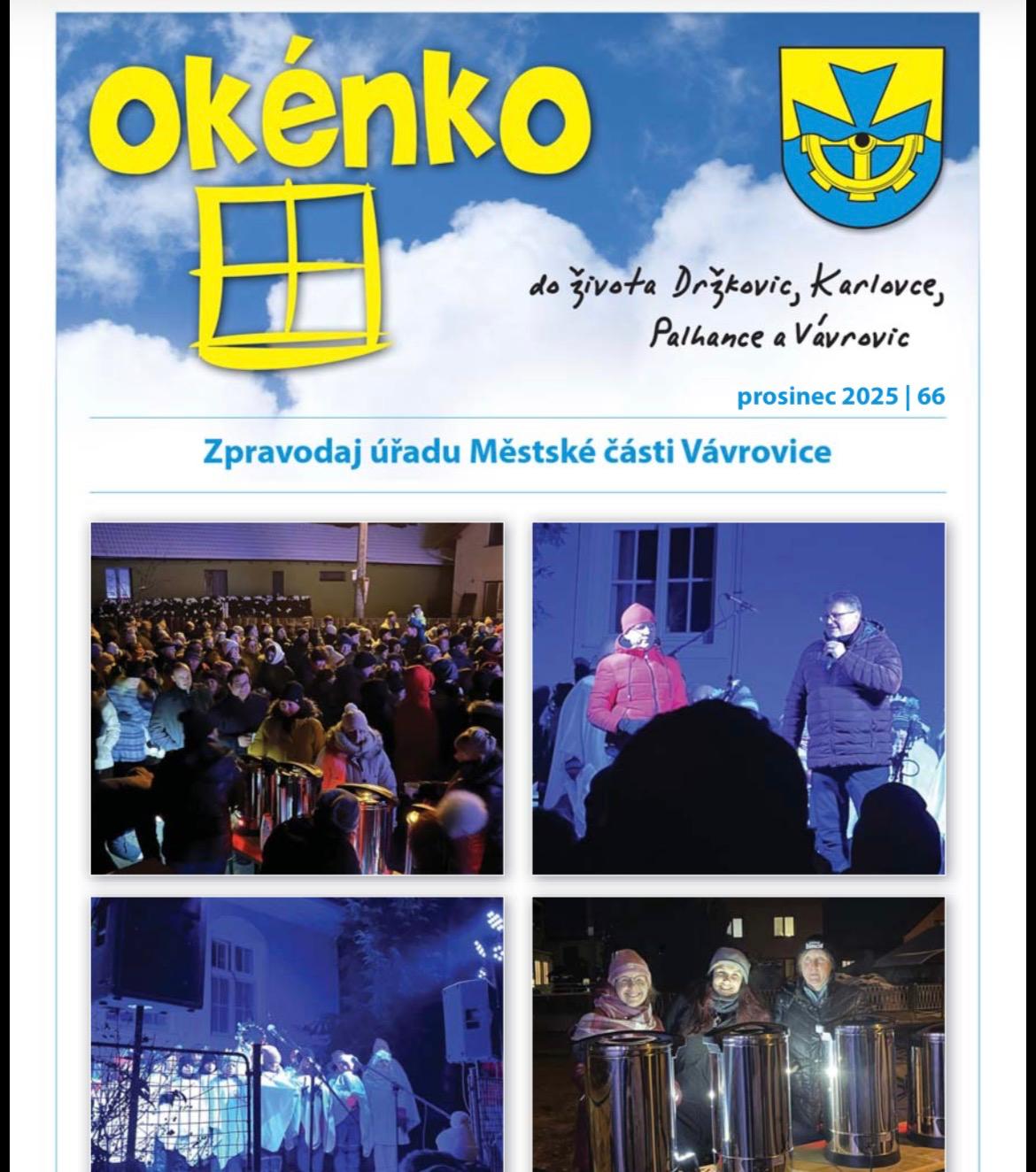 Home Aktuality Nové okénko č. 66 (prosinec 2025) Přejít na ... Zpravodaj Hlášení rozhlasu Nové okénko č. 66 (prosinec 2025) Publikováno: 16.12.2025 Upraveno: 16.12.2025 Ke stažení okenko 66 web [683,73 kB] Zpět