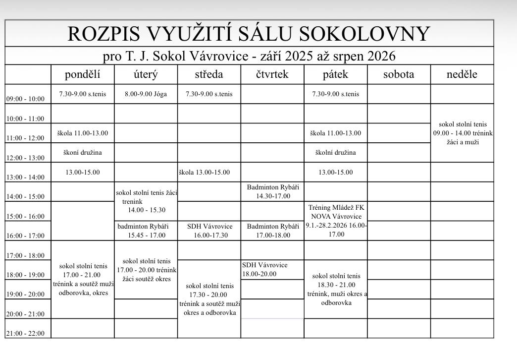 Rozpis provozu Sokolovny