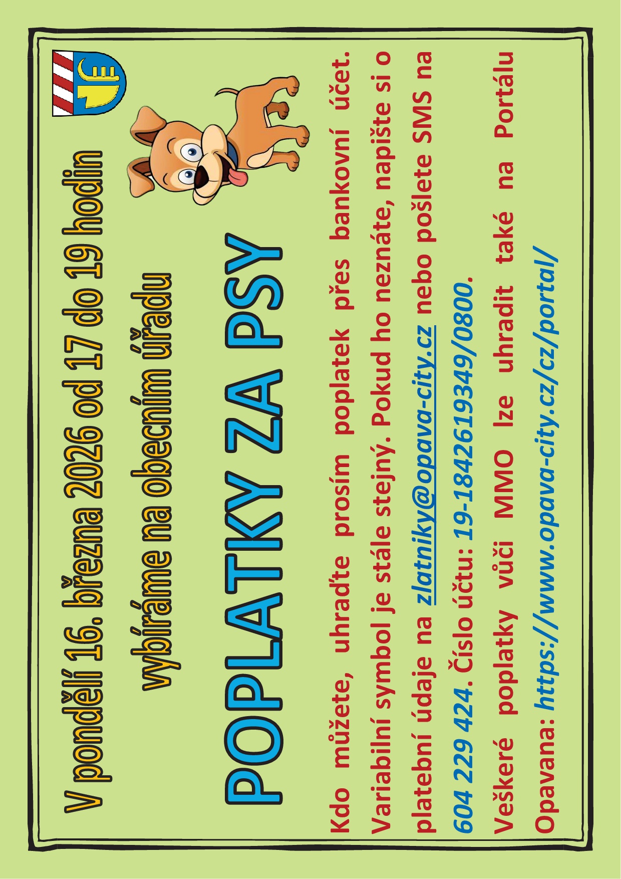 Home Aktuality Poplatky za psy Poplatky za psy 2026 Publikováno: 04.03.2026 Upraveno: 04.03.2026 Zpět